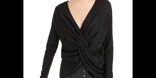 Bar III Suéter Feminino Glitter Wear-2-Ways Preto Tamanho P