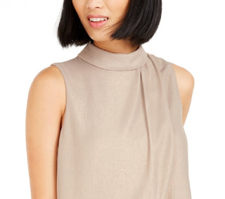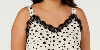 Blusa feminina Bar III com decote em V e acabamento em renda e bolinhas, sem mangas, bege, tamanho 1X