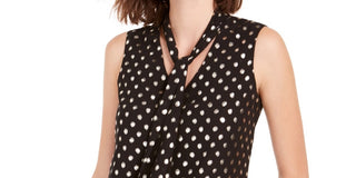 Blusa feminina Bar III com estampa de bolinhas em chiffon e gola alta, preta, tamanho extrapequeno