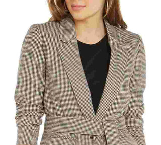 Blazer feminino xadrez com amarração na cintura Bar III, bege, cáqui, tamanho extragrande