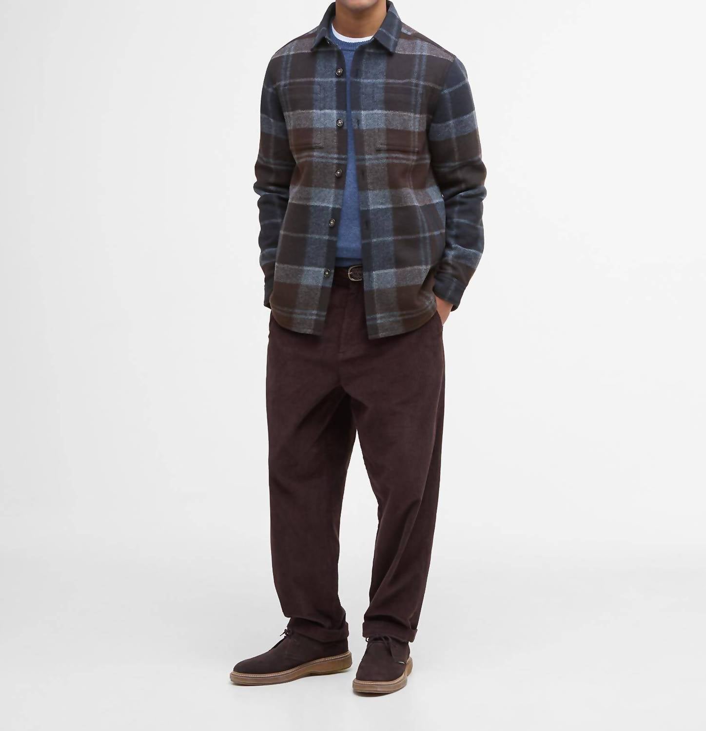 This button down shirt is comfortable yet polished. Elevate your wardrobe with the Barbour Chapter Check Overshirt in Midnight Oak Tartan, a stylish fusion of a shirt's smart-casual vibe and the practicality of a lightweight jacket. Crafted from 100% Polyester, this long-sleeved, collared piece features a button closure and is perfect for layering over T-shirts and sweatshirts. Weighing in at 450 grams, its plaid & check pattern adds a fashionable twist. Care for it by machine washing at 30°C and line drying for best results.