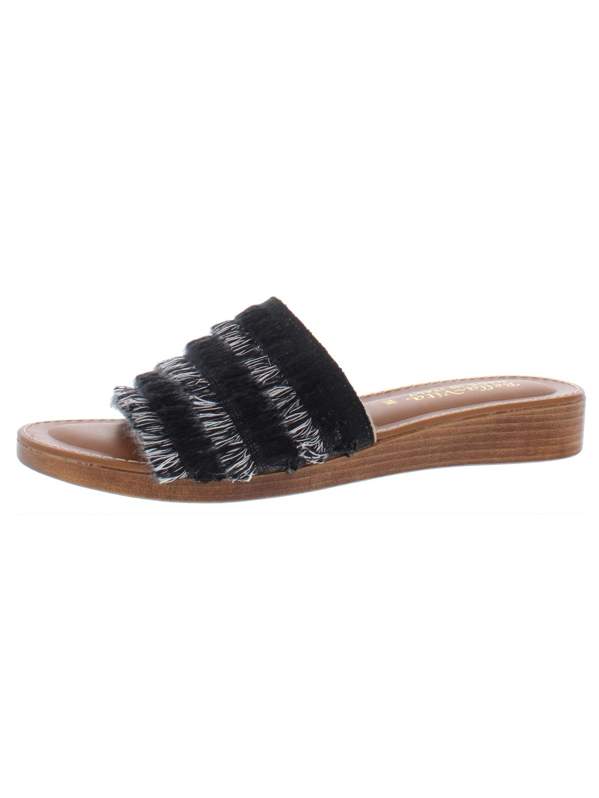 Sandálias femininas Bella Vita Abi Italy com franjas baixas e salto baixo, pretas, tamanho 8,5 m