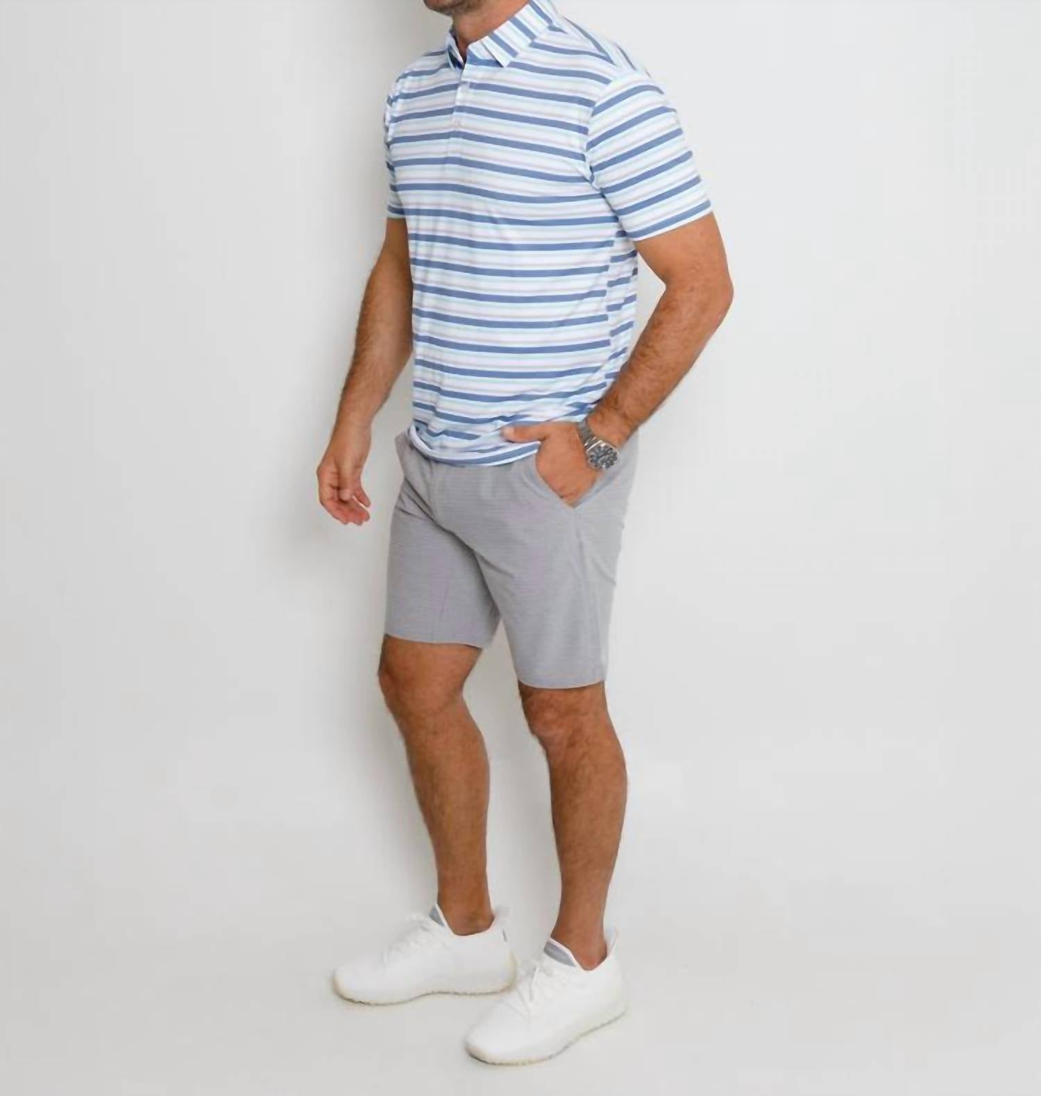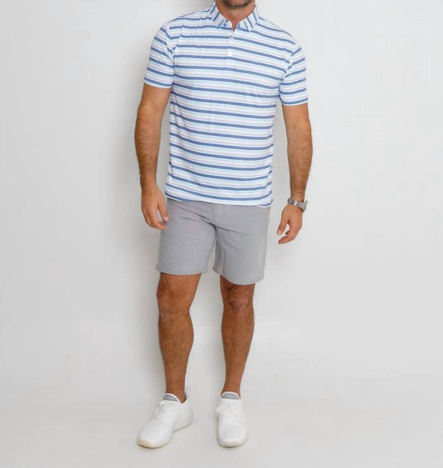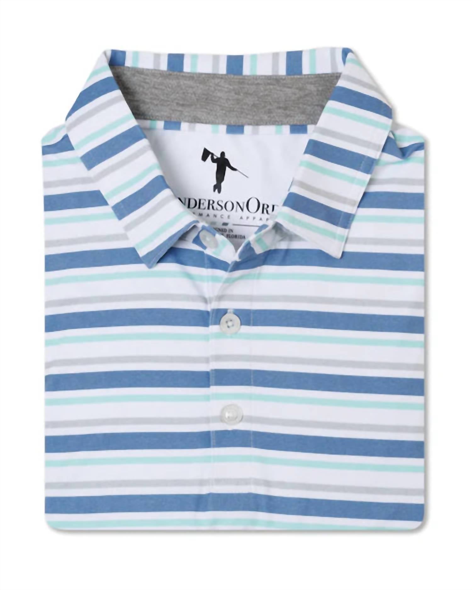 The Tidal Polo by AndersonOrd in Moonlight Blue Heather is a stylish addition to your summer wardrobe. Designed with short sleeves, this polo features a classic collar and a subtle stripe pattern. Made from high-quality polyester, it offers a comfortable pull-on closure and is perfect for warm weather. Easy to care for, simply machine wash and tumble dry to keep it looking fresh.
