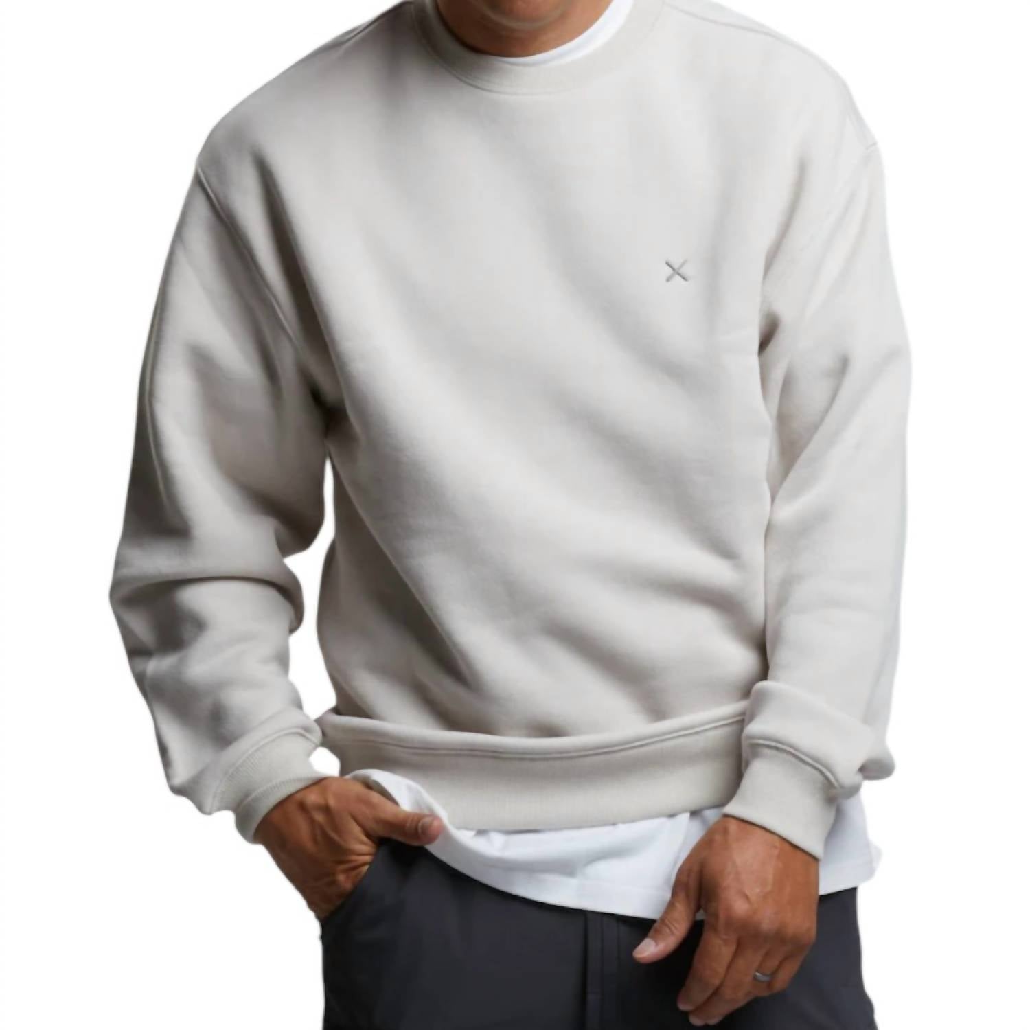 Introducing the Divine Fleece Pullover Top by CUTS, a minimalist essential in versatile parchment for any occasion. This long-sleeve crewneck is crafted from a luxurious cotton blend with a super soft brushed back fleece, providing both style and comfort. Complete with a unique custom gunmetal X logo, this solid, heavy-weight piece features a pull-on closure for ease. Care instructions recommend machine washing and laying flat to dry. Available in classic-fit, with body length measurements ranging from XS at 26 ½" to 2XL at 29 ¾".