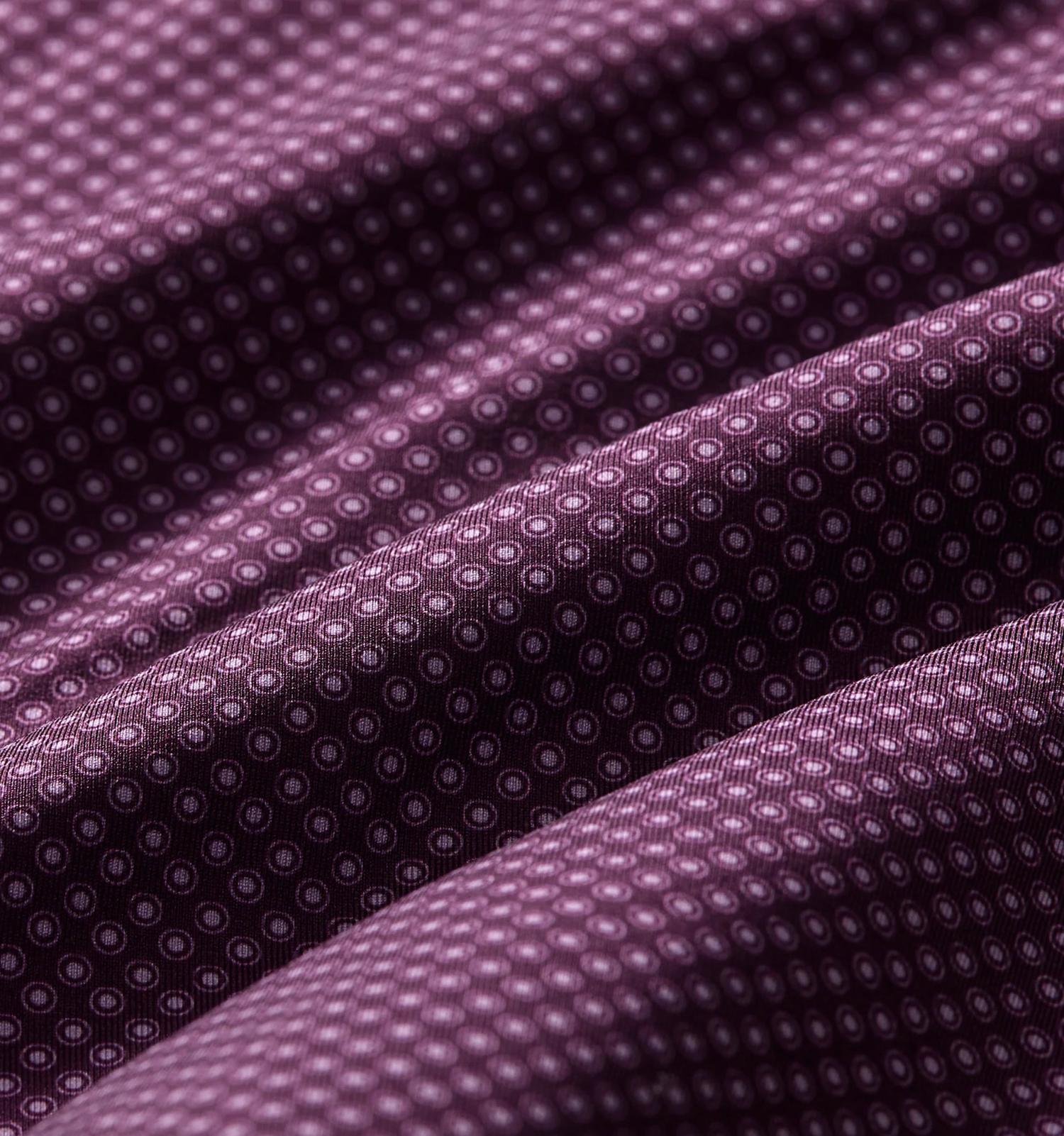 Introducing the Men's Versa Polo by Mizzen + Main, crafted for both style and performance. This patterned polo in a striking Eggplant color features short sleeves and a comfortable collar, perfect for summer vacations. Made from 88% Polyester and 12% Spandex, it offers built-in stretch and UPF 50+ protection to handle heat and movement outdoors. Closure: Button closure. Care instructions: machine wash cold and tumble dry low.