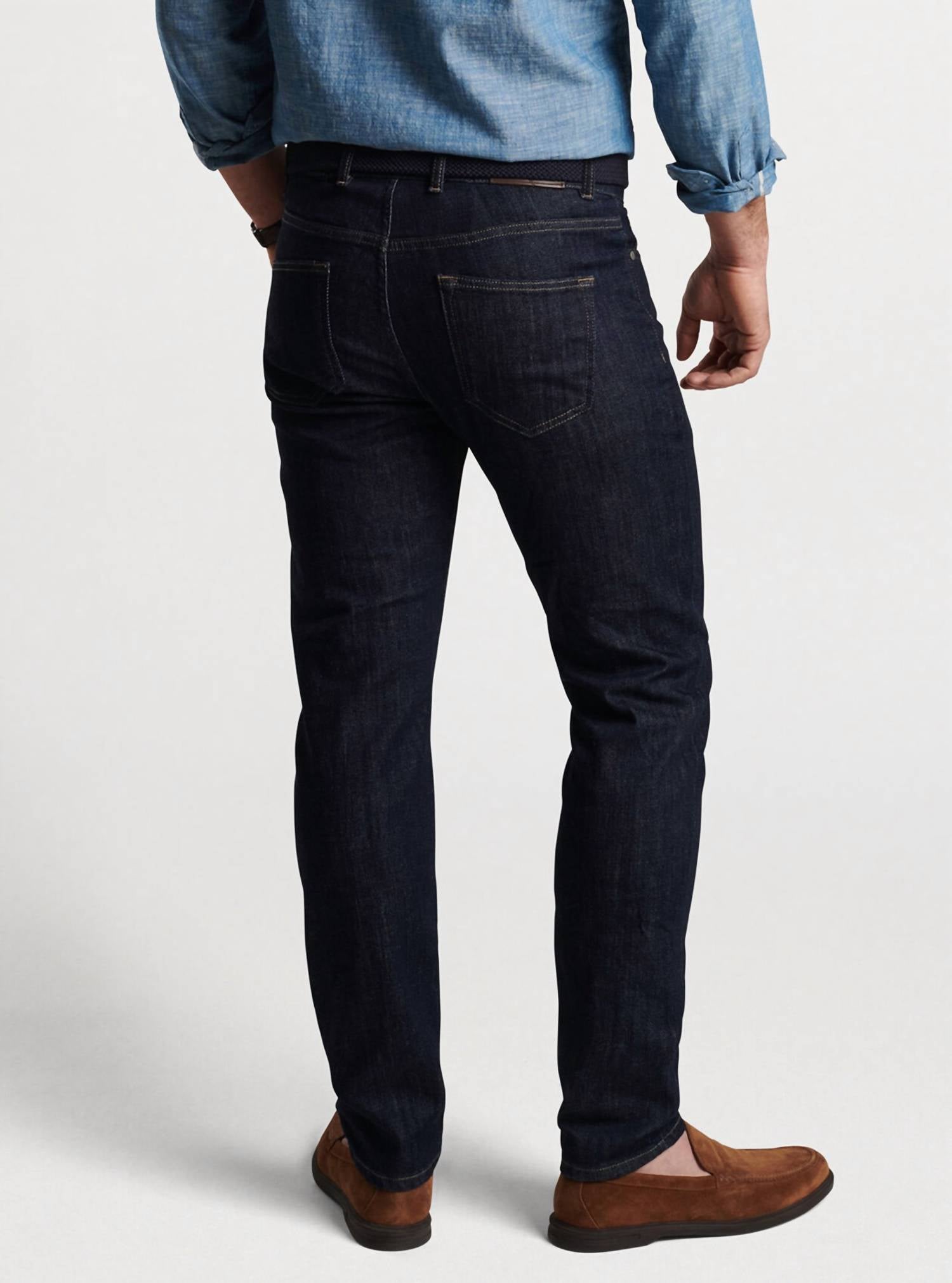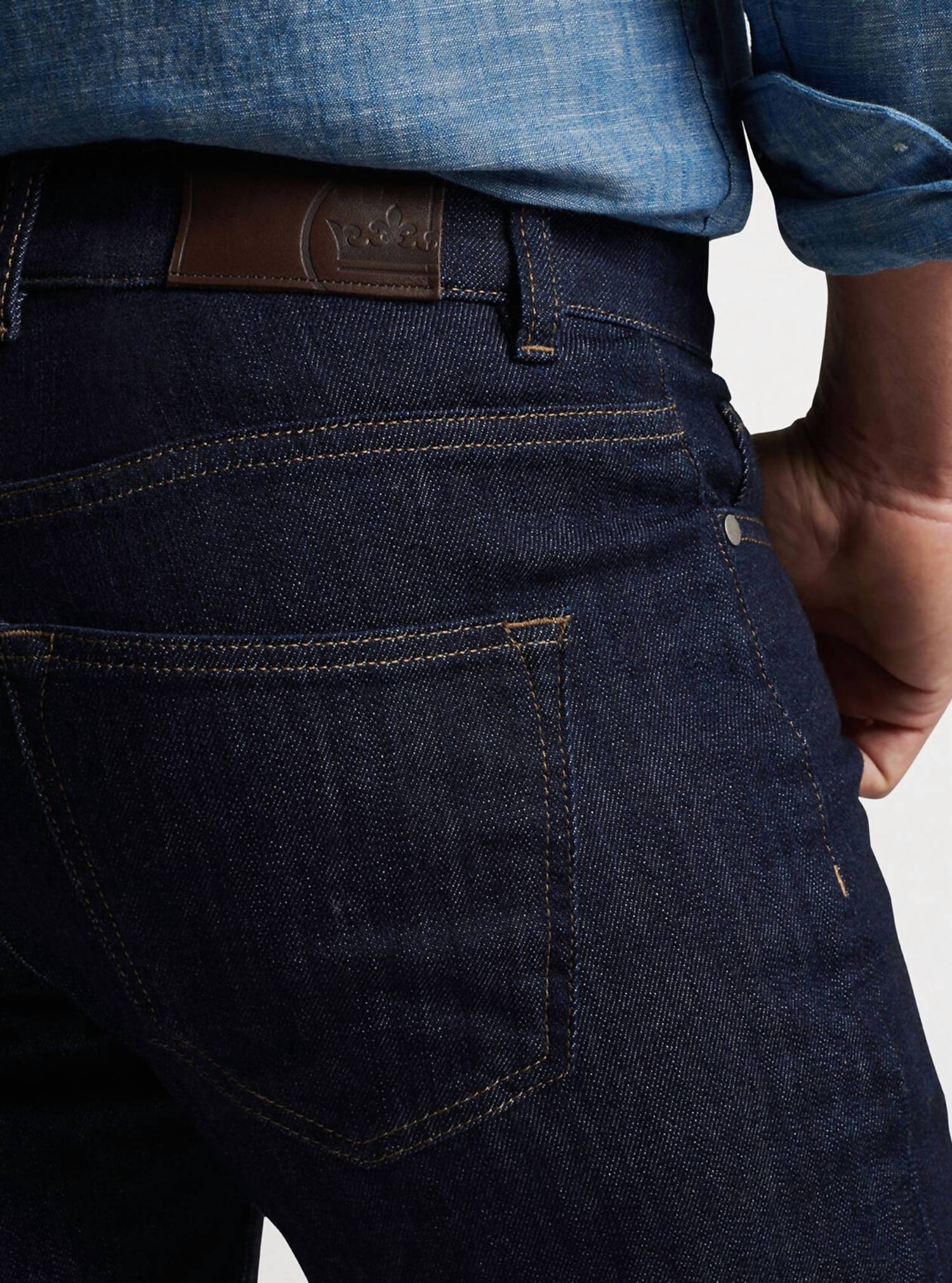 Apresentamos o Jeans Masculino Vintage Washed Five Pockets da PETER MILLAR, uma mistura perfeita de estilo clássico e conforto moderno. Confeccionado em índigo escuro, este jeans de cintura média apresenta perna reta e estilo clássico de cinco bolsos. Os sutis suíças e o acabamento lixado conferem um visual casual e desgastado, realçado por um patch de couro italiano nas costas. Fechamento: Botão. Cuidados: Lavável à máquina e secar na horizontal.