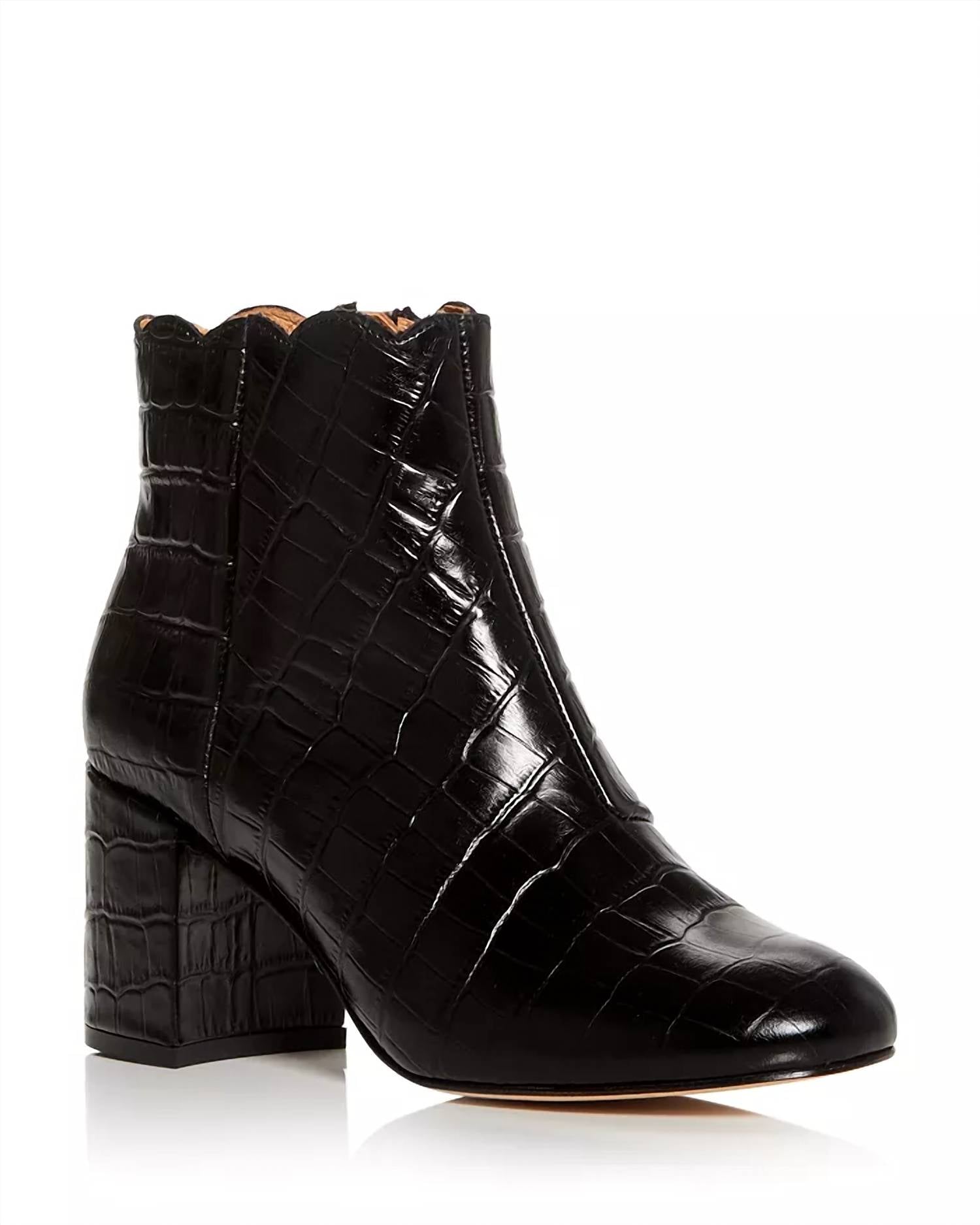 Diga olá à bota perfeita e mais versátil. A altura do tornozelo facilita a transição do dia para a noite. Use-a com sua calça jeans skinny favorita e camiseta para um look mais descontraído, ou combine-a com seu minivestido e jaqueta favoritos para uma saída à noite. Uma escolha requintada para qualquer conjunto estiloso. Confeccionada em couro luxuoso, esta bota preta apresenta detalhes em relevo de crocodilo e um elegante acabamento recortado na parte superior. Um prático fecho de zíper na lateral garante um ajuste perfeito, enquanto o salto bloco coberto de 7,6 cm oferece altura e conforto. Feitas com cuidado em Portugal, estas botas prometem não só moda, mas também qualidade.