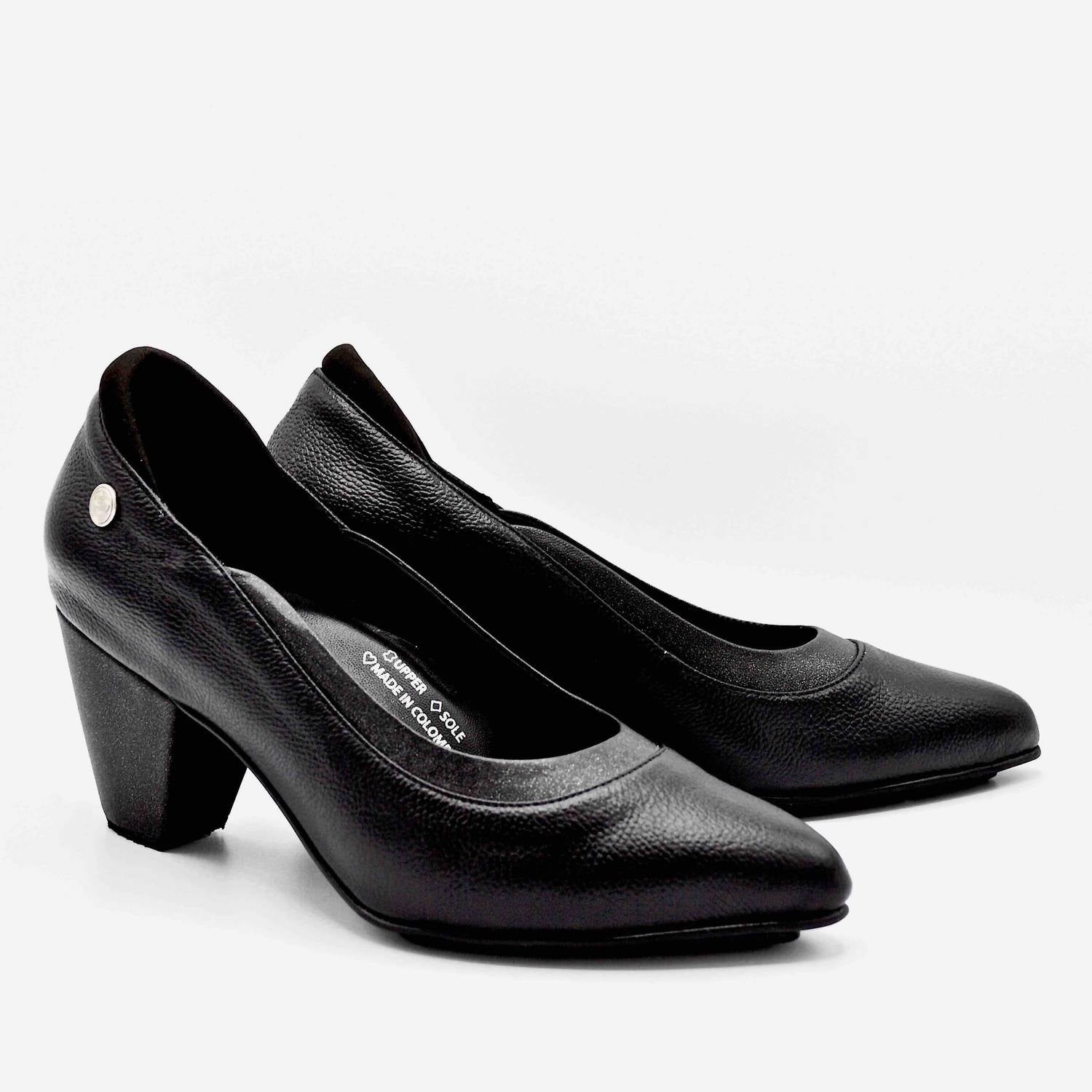 Combine essas belezas com sua calça jeans skinny ou vestido favorito para uma saída à noite na cidade. Arrase com sofisticação com o salto médio feminino Rhyme da Chelsea Jones, uma escolha elegante para qualquer ocasião. Com bico fino e amplo, e salto bloco de 6,35 cm, este calçado combina estilo e conforto com perfeição. O cabedal e o forro em couro preto/brilhante são complementados por um solado de borracha JONESOLE™ flexpad de 5 mm para facilitar os movimentos. Fabricados na Colômbia, estes saltos garantem um luxo silencioso com lycra acolchoada e borracha de alta densidade para proporcionar uma passada graciosa e silenciosa.
