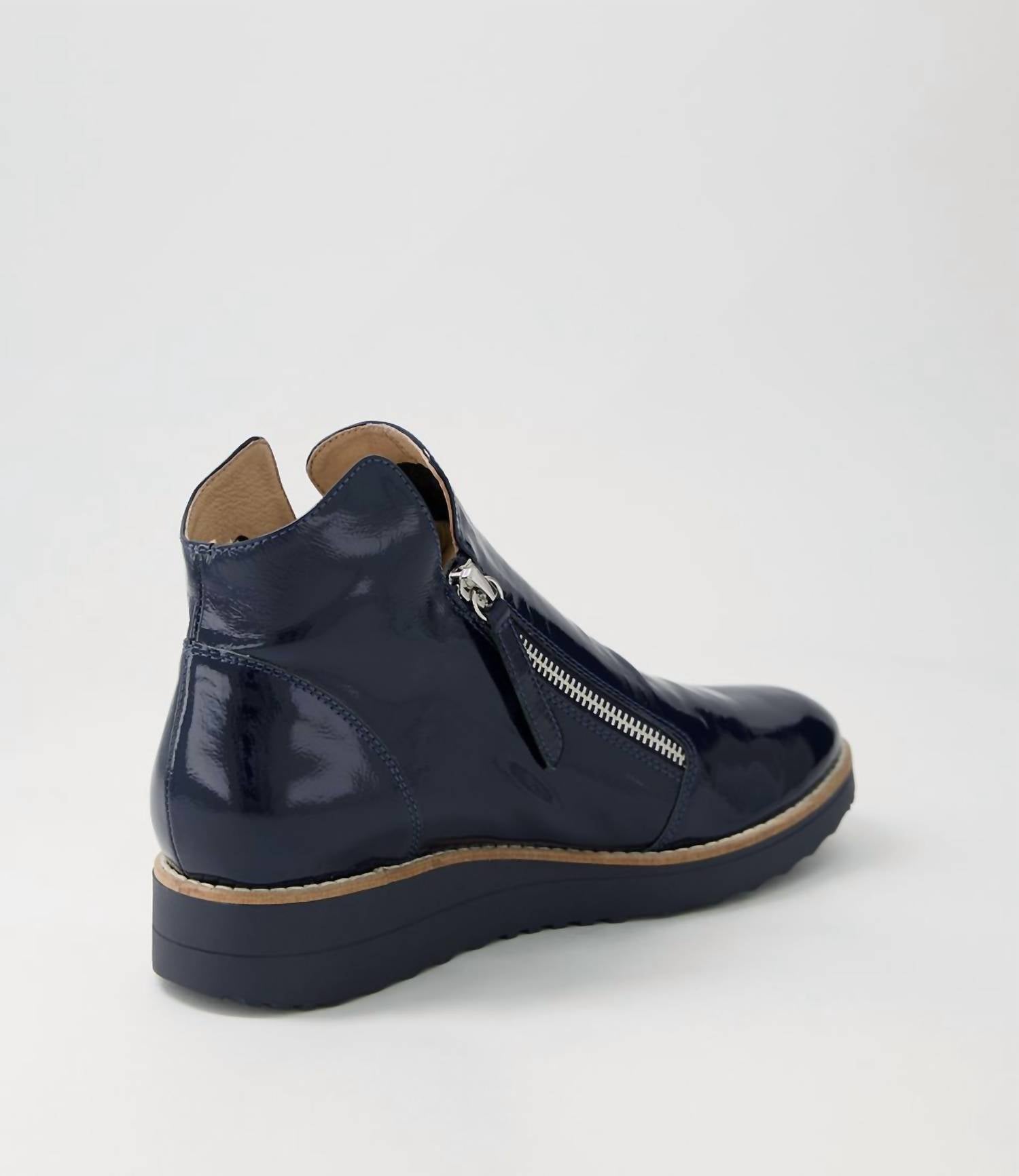 Diga olá à bota perfeita e mais versátil. A altura do tornozelo facilita a transição do dia para a noite. Use-a com sua calça jeans skinny favorita e camiseta para um look mais descontraído, ou combine-a com seu minivestido e jaqueta favoritos para uma saída à noite. Eleve sua coleção de calçados casuais com as Botas Femininas Ohmy Leather da Django & Juliette, confeccionadas em couro marinho de alta qualidade. Estas botas de cano alto têm bico arredondado e fecho duplo de zíper para um ajuste perfeito, complementadas por um solado anabela de espuma de 3 cm que adiciona um toque esportivo. Com um elegante acabamento em couro envernizado, estas botas de cano curto foram projetadas para conforto e estilo. Perfeitas para qualquer ocasião, são uma adição fácil ao seu guarda-roupa.