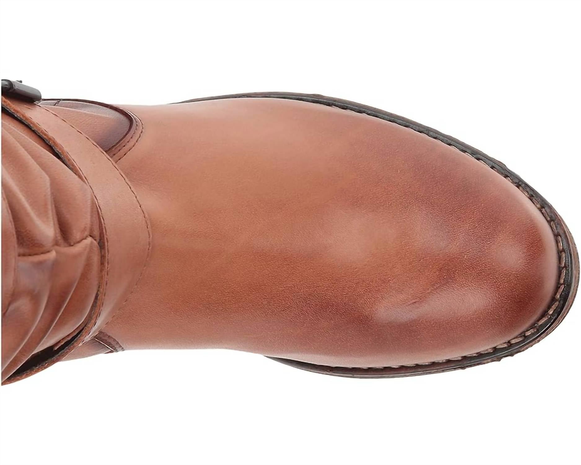 Tão versáteis que você pode usar essas botas com seus jeans favoritos ou até mesmo um vestido para um toque mais feminino. Liberte sua renegada interior com as Botas Noelle Femininas Eric Michael em um deslumbrante conhaque. Projetadas para a mulher moderna que anseia por conforto e estilo, essas botas de motociclista apresentam um luxuoso cabedal de couro acentuado com fivelas ajustáveis ​​para aquela estética ousada por excelência. O cano largo adiciona um toque relaxado, mas elegante, enquanto o prático fecho de zíper garante um uso sem esforço. No interior, o fino forro de pele sintética fornece a quantidade certa de calor e conforto. Criadas para versatilidade, essas botas vêm equipadas com um solado sintético com piso e um salto baixo, tornando-as perfeitas para tudo, desde aventuras urbanas a escapadas no campo. Não calce qualquer bota - ande com confiança nas Noelle, onde a ferocidade encontra a funcionalidade. Importadas e impecavelmente trabalhadas, essas botas são uma adição essencial a qualquer guarda-roupa ousado. Altura do salto: 1,25". Peso: 15 oz. Circunferência: 11". Cano: 9,5". Altura da plataforma: 0,5".