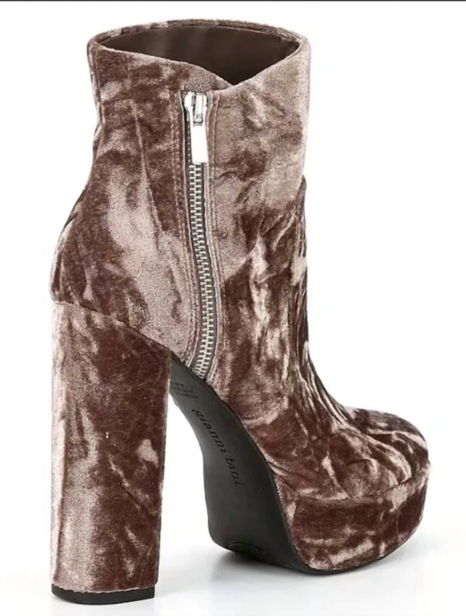 Diga olá à bota perfeita e mais versátil. A altura do tornozelo facilita a transição do dia para a noite. Use-a com sua calça jeans skinny favorita e camiseta para um look mais descontraído, ou combine-a com seu minivestido e jaqueta favoritos para uma saída à noite. Entre em sintonia com a elegância com as Botas Plataforma Didier Velvet com Salto Bloco da Gianni Bini, apresentadas em um sofisticado tom Rosa-pó. Estas deslumbrantes botas de cano curto apresentam um cabedal de veludo amassado e um elegante fecho de zíper lateral para facilitar o calce. O forro em tecido tricot e a palmilha acolchoada em espuma viscoelástica de 4 mm oferecem conforto, enquanto o solado de borracha garante estabilidade. O salto tem aproximadamente 13,8 cm de altura, complementado por uma plataforma de 3,9 cm para uma silhueta marcante.