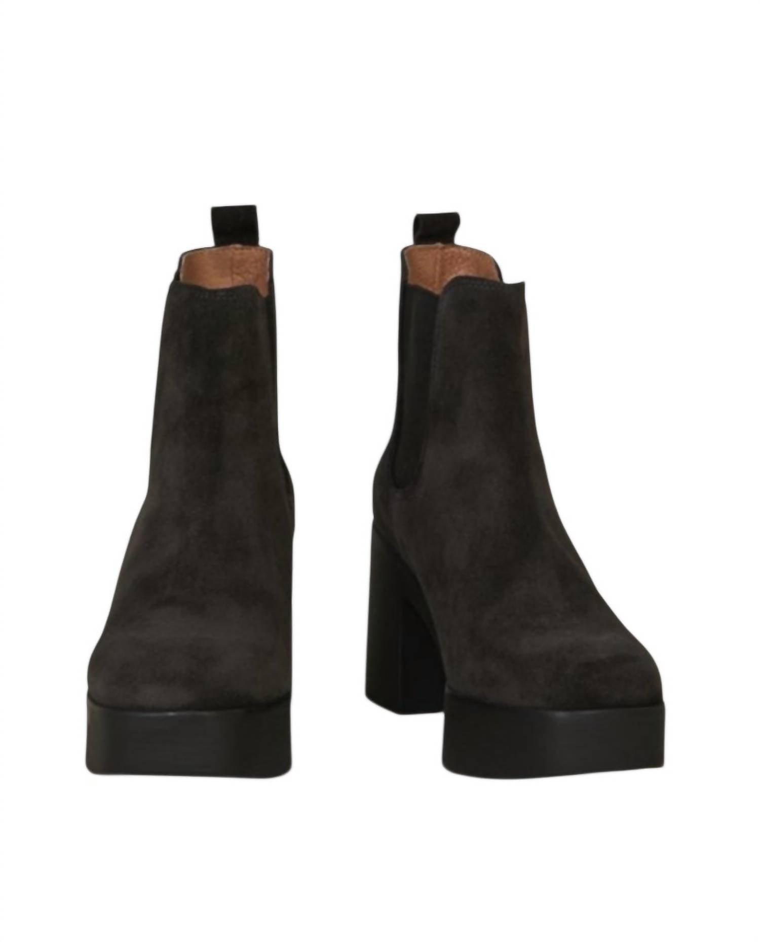 Aprimore seus calçados com estas botas clássicas de salto, projetadas para unir sofisticação e estilo. Confortáveis ​​o suficiente para dias longos ou uma saída à noite. Adote um visual inspirado no grunge com as botas de camurça Intentionally Blank Drue, confeccionadas para oferecer estilo e praticidade em um elegante tom carvão. Estas botas femininas de salto apresentam cabedal de camurça resistente à água com forro de couro e bico arredondado para conforto o dia todo. Com salto bloco alto de 8,2 cm e cano de 13 cm, elas proporcionam um toque elegante, perfeito para eventos noturnos nesta primavera. Fabricadas na Espanha, estas botas estão disponíveis em tamanhos inteiros e vêm na caixa original, personificando a tendência boho-chic ideal para as celebrações do Dia de Ação de Graças.