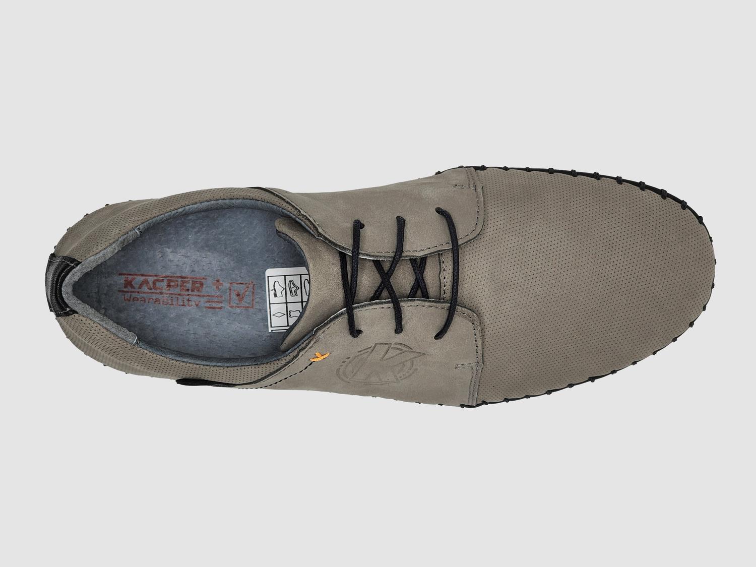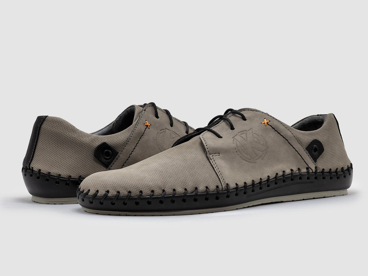 Feito à mão para qualidade e precisão excepcionais. Cor cinza elegante com design diferenciado de linhas costuradas em grafite. Estrutura leve para conforto e praticidade durante todo o dia. Tamanho fiel para um ajuste perfeito. Feito de couro natural de alta qualidade proveniente da Polônia.