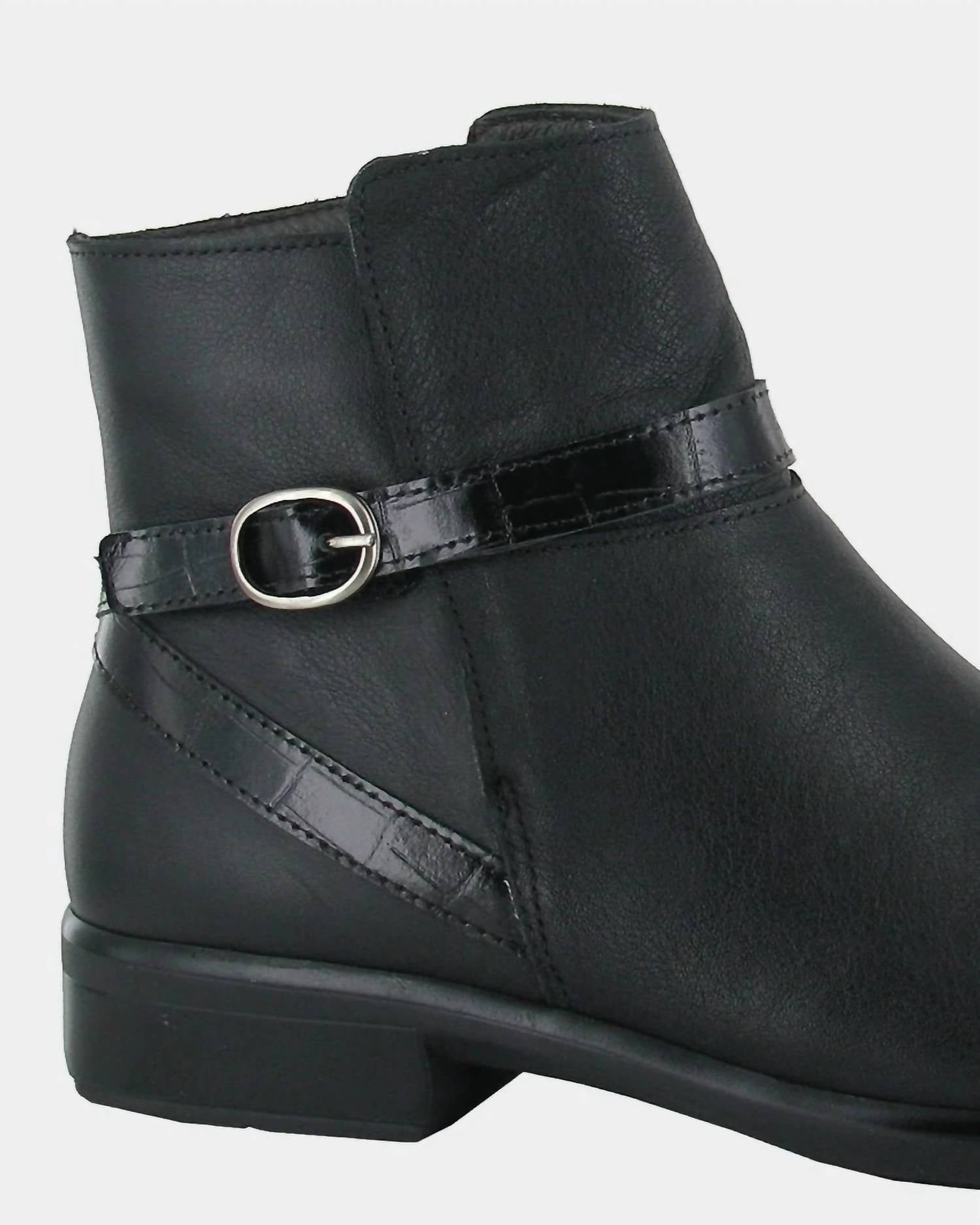Diga olá à bota perfeita e mais versátil. A altura do tornozelo facilita a transição do dia para a noite. Use-a com sua calça jeans skinny favorita e camiseta para um look mais descontraído, ou combine-a com seu minivestido e jaqueta favoritos para uma saída à noite. Confeccionadas com sola de poliuretano durável e um elegante detalhe de fivela falsa, estas botas garantem resistência ao deslizamento e um design adequado para órteses. O salto bloco de 3,8 cm da Briza proporciona a sustentação ideal, complementado por uma palmilha anatômica removível de cortiça e látex para um conforto duradouro. Perfeitas para quem busca um ajuste de largura média, estas botas em couro macio preto, preto-azeviche e preto de crocodilo prometem flexibilidade com sua construção Strobel costurada à mão.