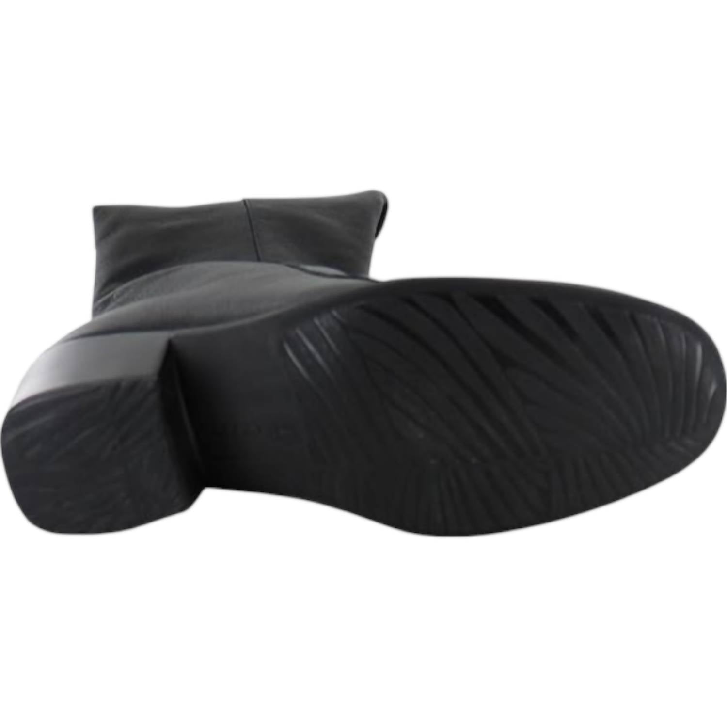 Uma tendência que veio para ficar. Deslumbre-se com a sofisticação meticulosamente confeccionada em couro preto macio. As botas de cano médio apresentam bico arredondado e salto bloco com 5 cm de altura. O cabedal em couro é complementado por um forro técnico acolchoado e uma palmilha removível revestida em cortiça e látex, garantindo um ajuste confortável. Apresentam fecho lateral com zíper e circunferência de 38 cm.