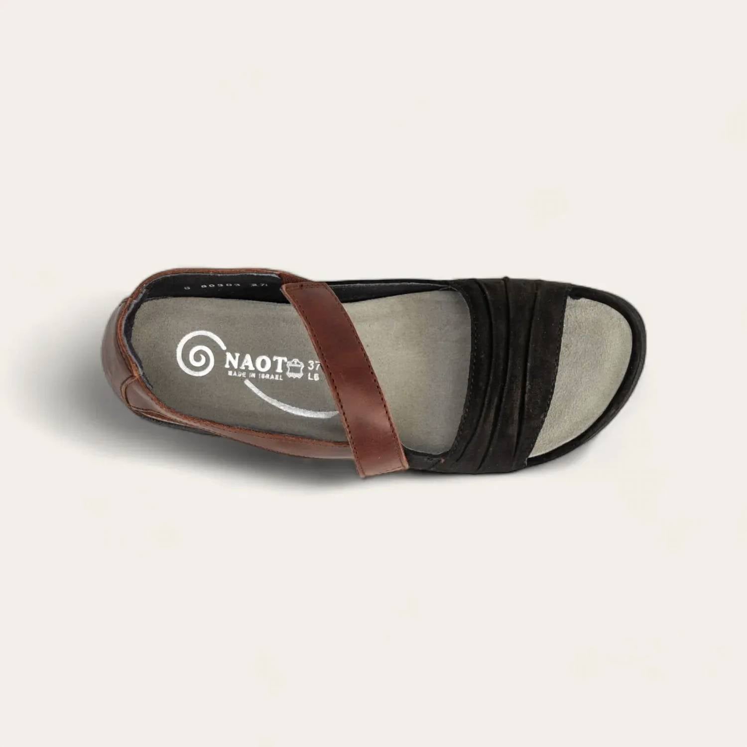 Conheça a sandália Papaki – sua nova opção para um conforto moderno e moderno que você vai adorar usar o dia todo. Com seu design moderno, tira frontal acolchoada e detalhes franzidos contrastantes, a Papaki adiciona um toque de estilo a qualquer look. Mas não se trata apenas de aparência – esta sandália foi projetada para o máximo conforto. Com um calcanhar acolchoado e um prático fecho de velcro no peito do pé, você desfrutará de um ajuste seguro e confortável a cada passo. Confeccionada com a palmilha anatômica e removível de cortiça e látex da Naot, envolta em camurça macia, este calçado se molda ao formato do seu pé com o uso, garantindo um conforto personalizado. A Coleção Koru apresenta um solado de poliuretano de 1 polegada, extremamente leve, durável e antiderrapante. Esta coleção utiliza uma construção Strobel costurada à mão, tornando-a forte e flexível. Além disso, é aceita pela Associação Médica Podológica Americana (APMA) por promover a boa saúde dos pés. A Papaki se ajusta à nossa palmilha Koru, garantindo ainda mais suporte e conforto sob medida para seus pés.