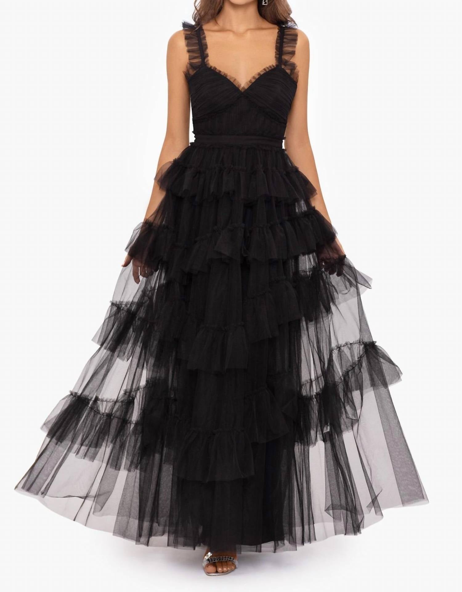 Betsy & Adam - Gigi Long Ruffle Mesh Dress