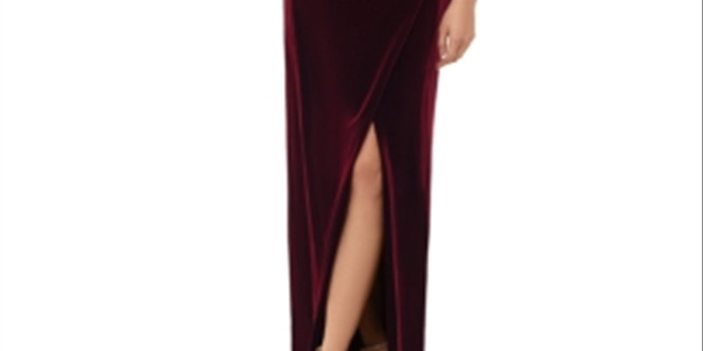 Vestido de festa feminino Betsy & Adam, de veludo drapeado, com fenda, tamanho 2, vinho