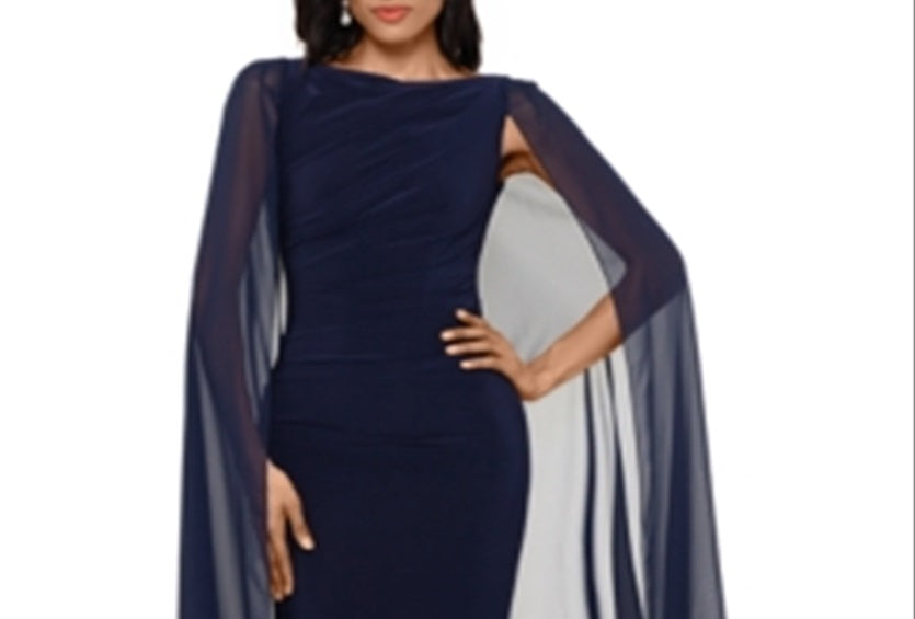 Gola redonda | Fecho de zíper nas costas | Sobreposição de capa de chiffon