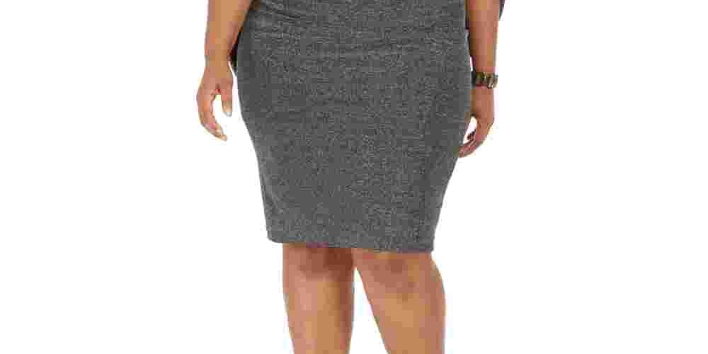 Aproximadamente 110 cm de comprimento, do centro do pescoço até a bainha. O comprimento é baseado no tamanho 48L e varia 3 mm entre os tamanhos. Decote canoa; corte reto. Fecho de zíper nas costas. Mangas 3/4. Detalhe metálico com glitter em toda a peça; franzido lateral; capa anexada.