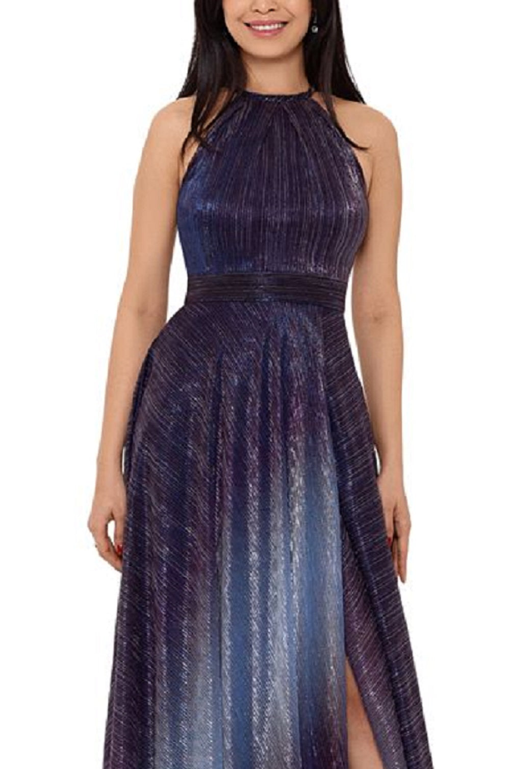 Seja a estrela do show com este vestido metálico ultraglamouroso da Betsy & Adam. | Aproximadamente 162,5 cm do centro do decote até a bainha. O comprimento é baseado no tamanho 4 e varia 1/4 entre os tamanhos. | Decote halter; Silhueta do vestido | Zíper nas costas com fecho de colchete | Fenda na bainha frontal. | NOTA IMPORTANTE: Este item chega com uma etiqueta de devolução anexada e instruções para remoção. Após a remoção da etiqueta do vestido, este item não poderá ser devolvido.