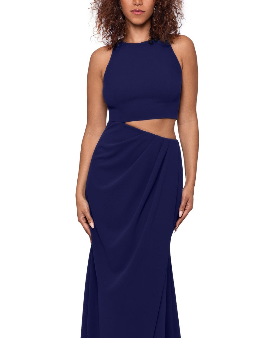 Mostre um pouco de pele de uma forma absolutamente elegante neste vestido Betsy & Adam | com um recorte chique na cintura. | Aproximadamente 61 de comprimento do ponto alto do ombro até a bainha. | Vestido formal longo | Crepe Scuba; elástico e com suporte | Gola redonda; silhueta do vestido | Fecho de zíper oculto nas costas