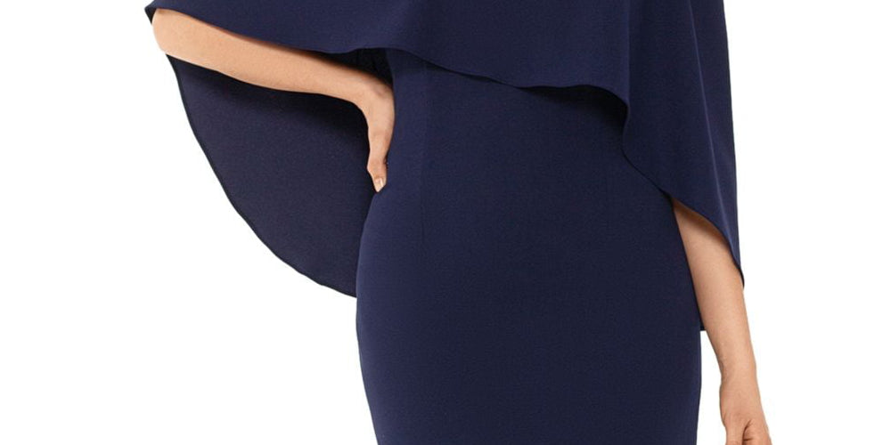 Vestido de festa Betsy Adam feminino com zíper e mangas sobrepostas, decote ilusão acima do joelho, tamanho 4, azul-marinho