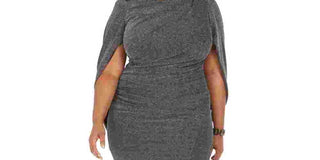 Vestido de capa feminino Betsy & Adam Plus Size em malha metálica, preto, tamanho 20W