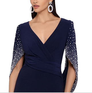 Vestido feminino plus size com mangas esvoaçantes e detalhes embelezados, tamanho marinho, pequeno e pequeno, B&A By Betsy & Adam