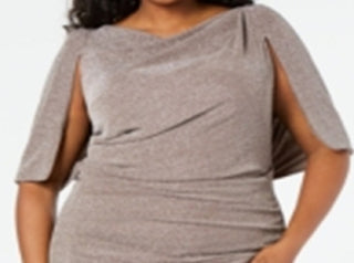 Vestido Betsy & Adam Feminino Plus Size Sheath Shimmer Capel Marrom Tamanho 18W