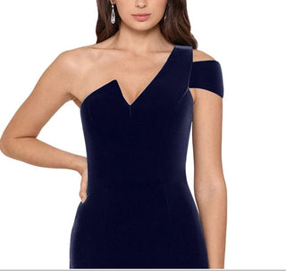 Vestido de veludo feminino Betsy & Adam, um ombro, azul-marinho, tamanho 4