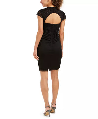 Vestido tubinho com decote profundo e costas abertas Betsy & Adam para mulheres, preto, tamanho 14