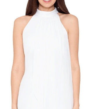 Vestido de crepe assimétrico de chiffon com sobreposição Betsy & Adam para mulheres, tamanho 6, branco