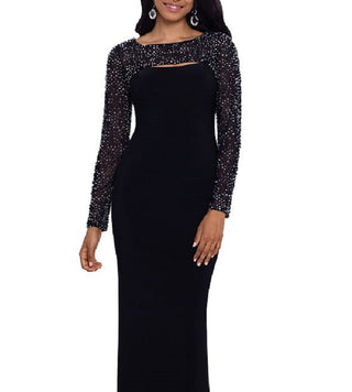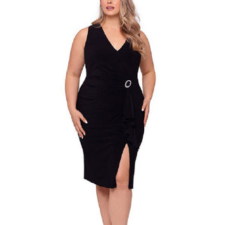Vestido feminino Betsy & Adam com strass e alfinetes, preto, tamanho 14W