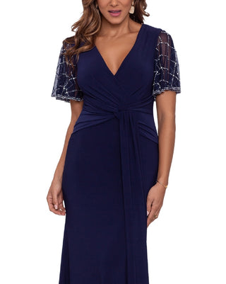 Vestido de festa feminino Betsy & Adam com mangas e contas, azul, tamanho 6