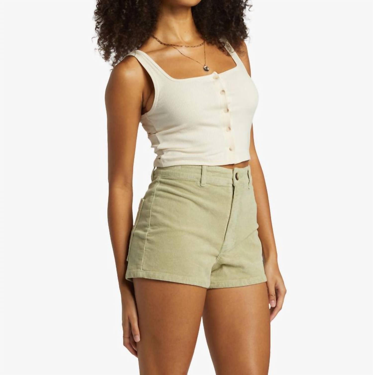 Com um ajuste perfeito, nós amamos esses shorts de cintura alta e você também vai adorar. Apresentamos o short Billabong Free Fall Cord em tom abacate, a escolha perfeita para dias casuais com um toque de estilo. Feito de uma mistura de algodão macio [98% algodão, 2% elastano], este short de cintura alta oferece um visual texturizado e vem equipado com bolsos práticos. Projetado com fecho de botão para um ajuste seguro, este short é tão prático quanto moderno. Para melhor cuidado, basta lavar à mão e secar no varal.