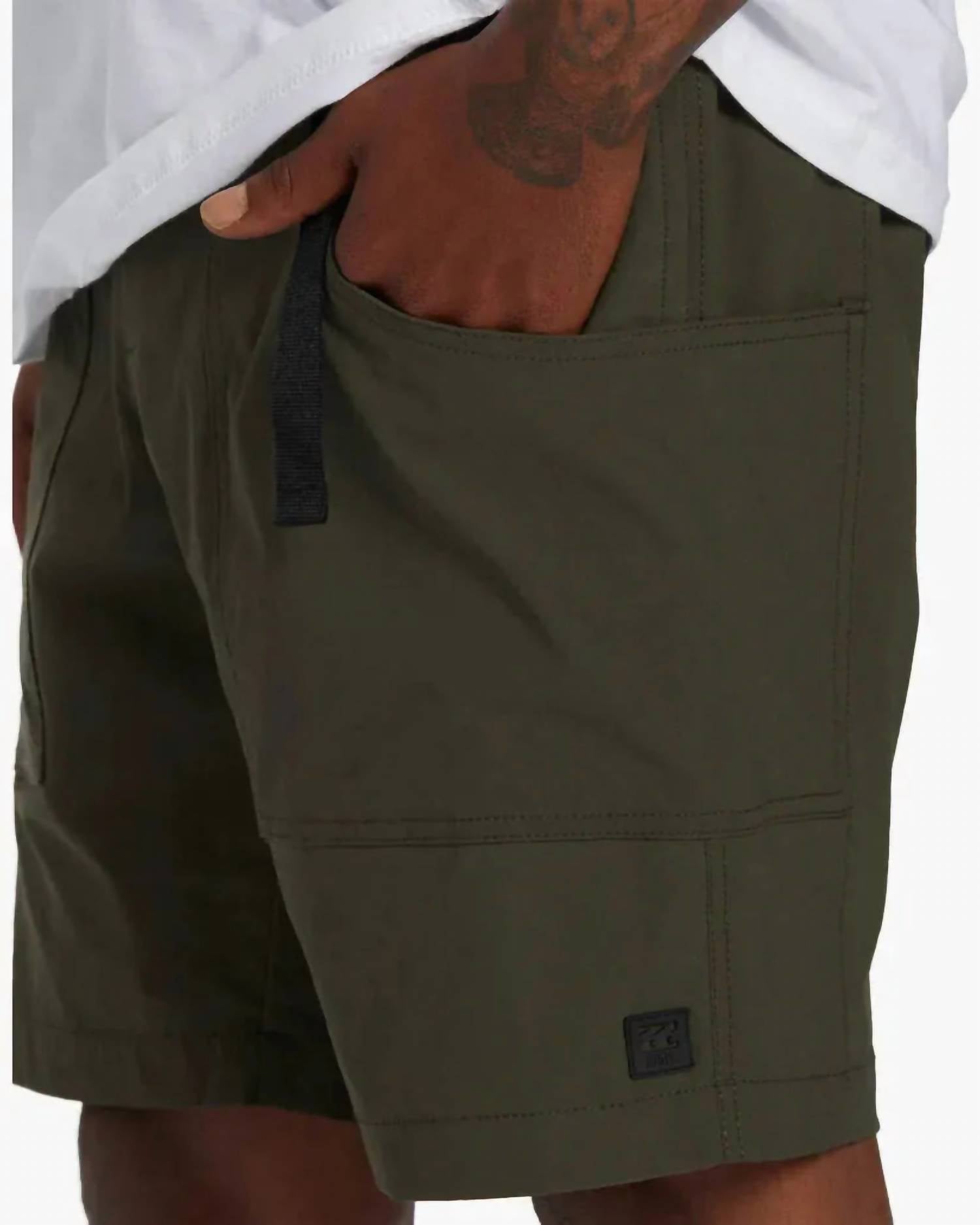 Experience the ultimate in outdoor adventure with the Billabong Men's Surftrek Trail Climber Short in a stylish Military hue. Designed for the serious outdoorsman, these shorts feature a solid pattern with a pull-on closure for ease and convenience. Crafted from a durable nylon blend, they offer the perfect combination of comfort and resilience. For best results, hand wash and line dry these shorts, and explore every trail with confidence.