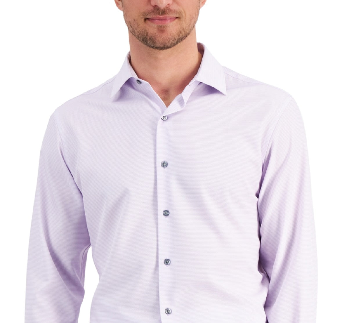 Projetada com gola ampla e tecido elástico que absorve a umidade e nunca precisa ser passado a ferro | A camisa social com estampa geométrica da Alfani está pronta para se tornar uma adição arrasadora à sua lista de looks favoritos