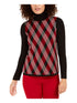 Suéter feminino Anne Klein Argyle manga comprida gola alta preto tamanho grande