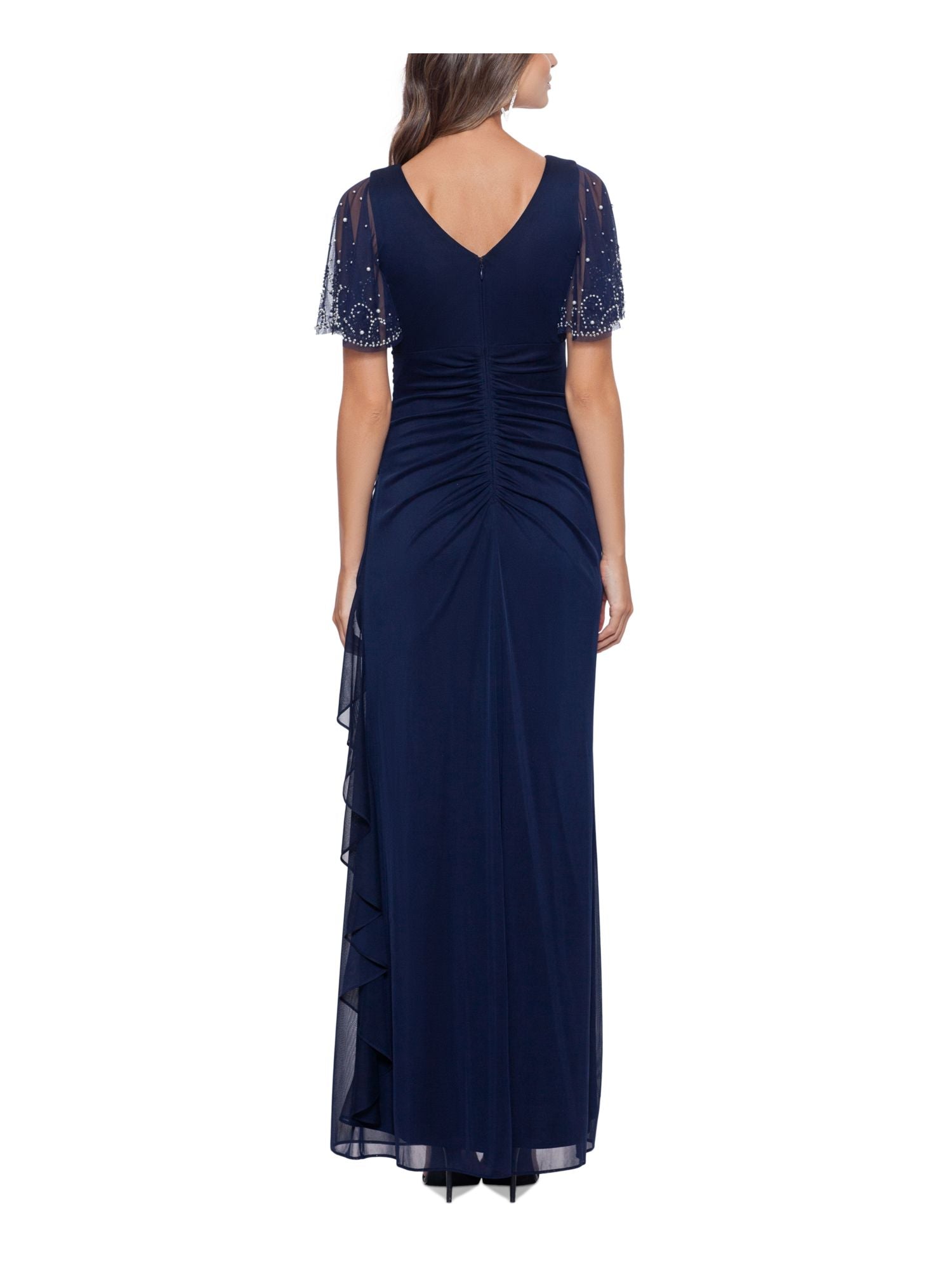 Vestido de festa feminino Betsy & Adam com babados em cascata, azul, tamanho 10