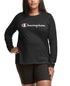 Camiseta feminina Champion com logo e manga comprida, preta, tamanho 4X