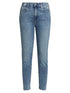 Calça jeans skinny feminina JEN7, cintura alta, comprimento até o tornozelo, com bordado, azul, tamanho 27