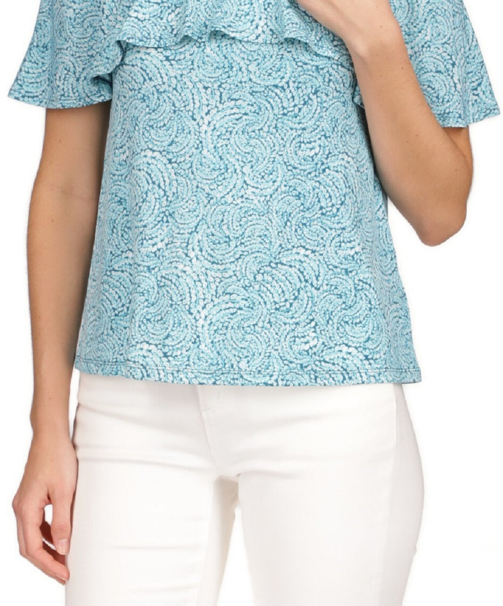 Uma atualização divertida e sofisticada para suas peças separadas favoritas | o top de malha Michael Kors destaca um decote halter chique com ombros descobertos e babados. | Aproximadamente 26 de comprimento | Decote halter com babados; fecho de zíper nas costas | Mangas curtas com recortes nos ombros descobertos | Poliéster/elastano | Lavável à máquina