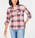 Camisa utilitária xadrez feminina Tommy Hilfiger rosa tamanho médio