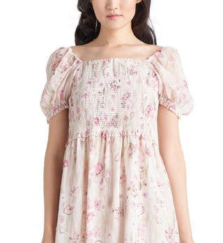 Vestido curto feminino com mangas esvoaçantes e fita preta, tamanho pequeno, branco