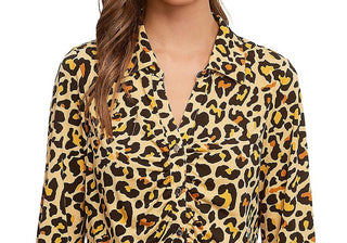 Blusa Karen Kane com estampa floral e manga comprida, cinza, tamanho XS