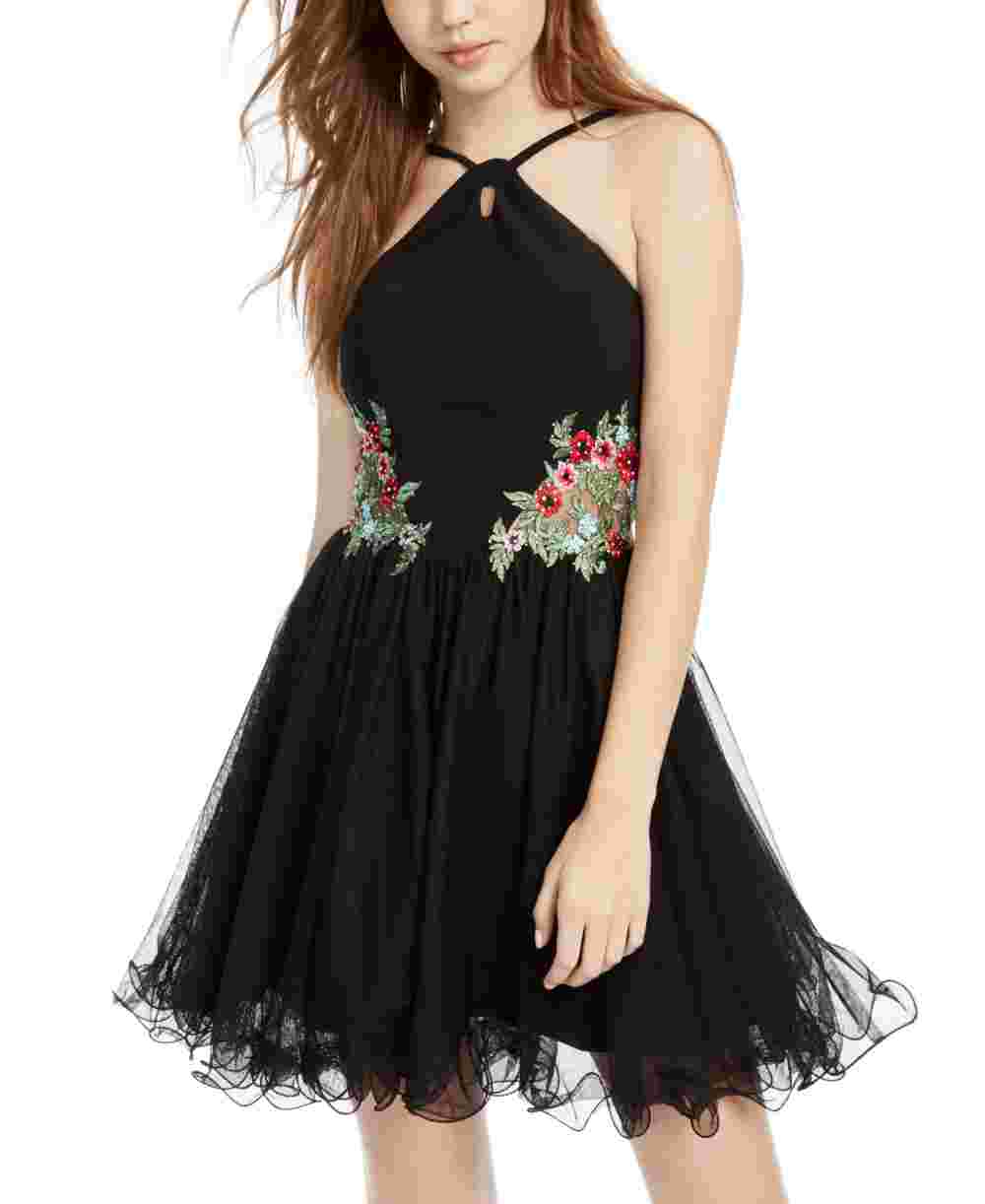 Vestido de festa curto com zíper floral bordado e sem mangas Blondie feminino, tamanho 1, preto