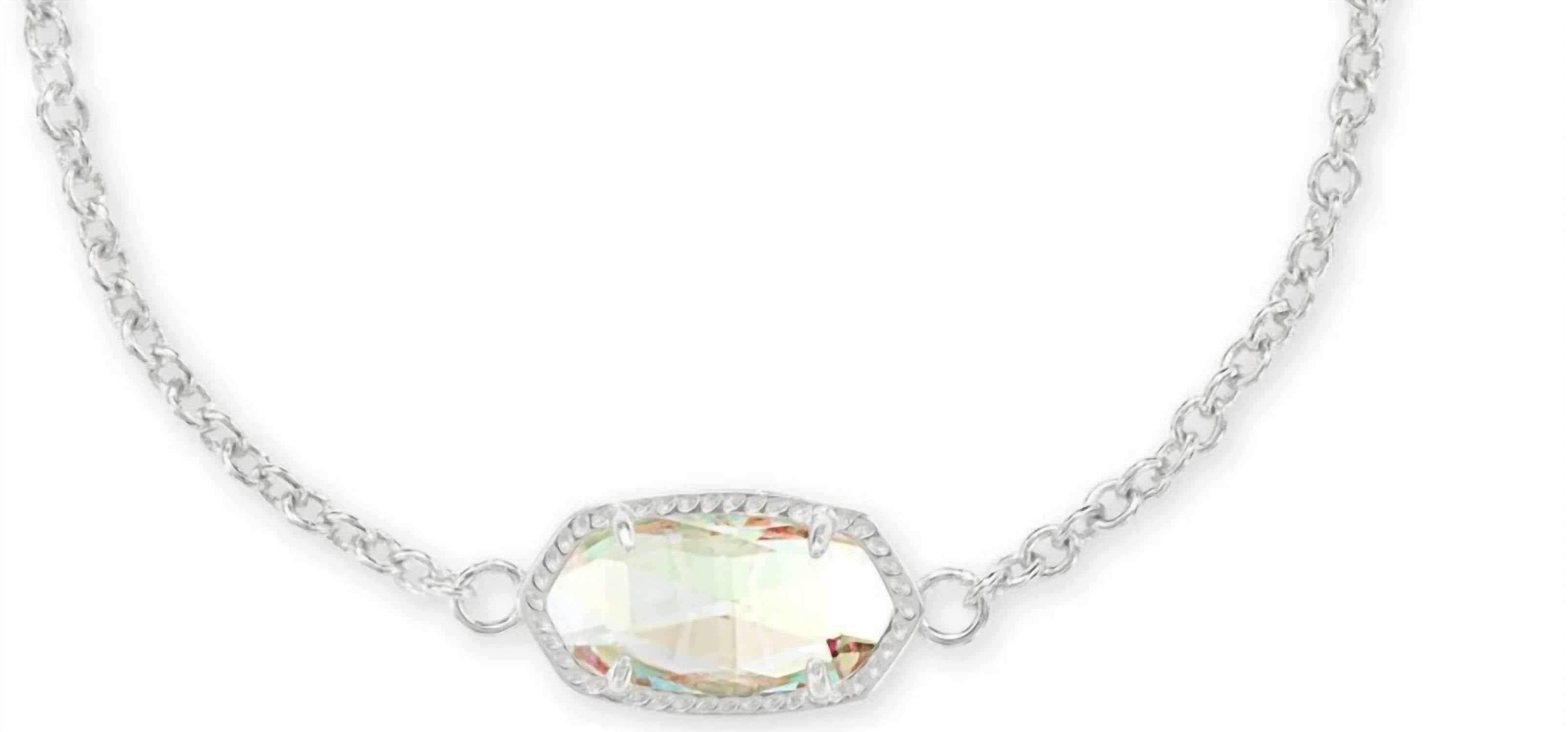 Adicione um toque de elegância ao seu conjunto com a Pulseira Elaina de Prata da Kendra Scott, com uma delicada corrente de 23 cm e um pingente elegante de 1,9 cm de comprimento e 1,9 cm de largura. Habilmente trabalhada em latão, esta pulseira realça o tom cativante do Vidro Dicróico, tornando-a um acessório versátil para qualquer ocasião. Use-a sozinha para um visual minimalista ou combine-a com outras peças para uma declaração de estilo. Uma peça ideal para o dia a dia que adiciona um toque de brilho à sua coleção de joias sem esforço.