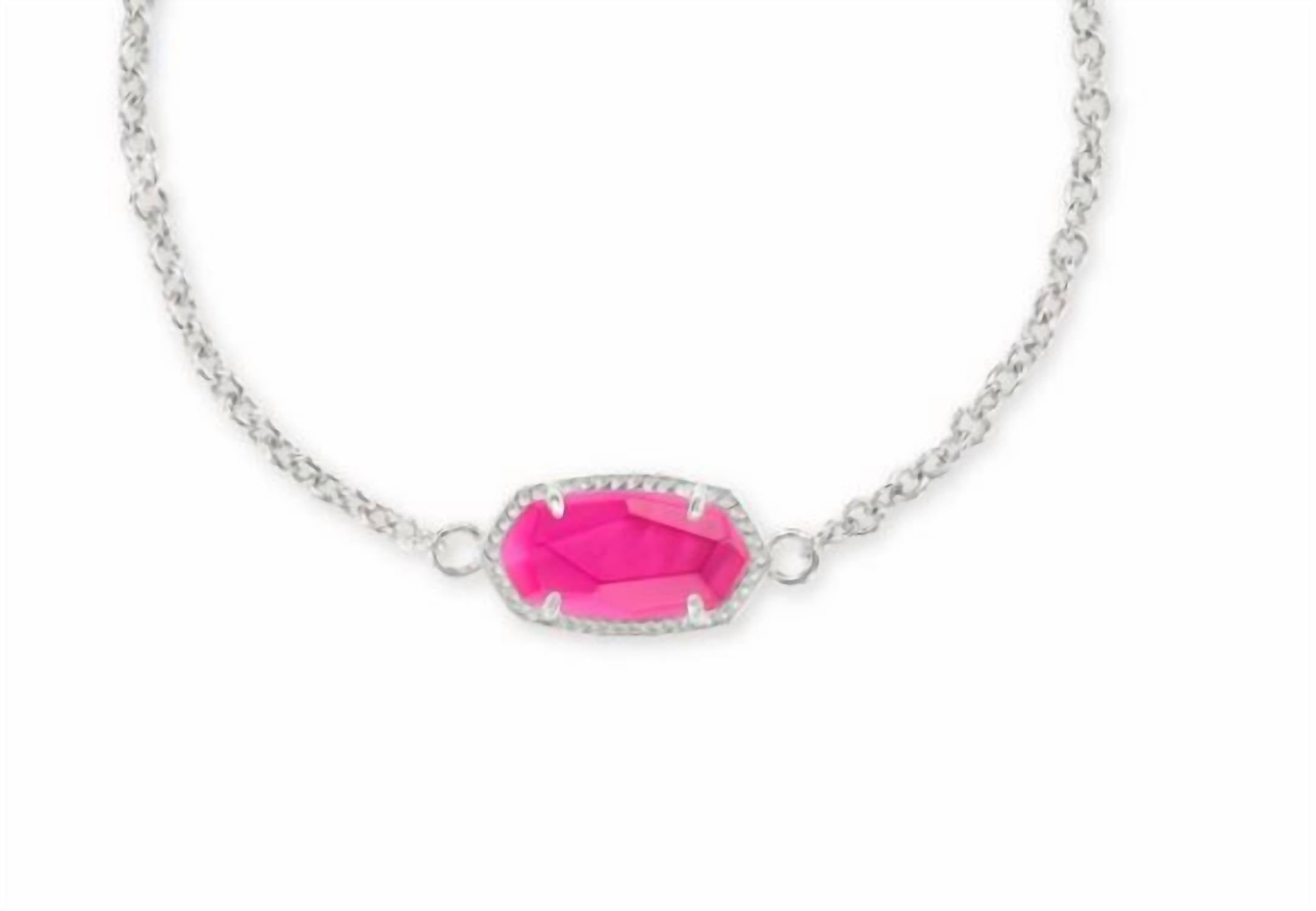 Adicione um toque de elegância ao seu conjunto com a Pulseira Elaina em Prata, confeccionada por Kendra Scott. Destacada pela delicada corrente e um detalhe em Madrepérola Negra, esta peça é o toque perfeito para qualquer ocasião. Com dimensões de uma corrente de 23 cm e um pingente de 1,9 cm por 9 cm, ela oferece um ajuste versátil. Ideal para combinar com outras peças ou para usar sozinha, esta pulseira Azalea Illusion em tom rosa é uma adição requintada a qualquer coleção de joias.