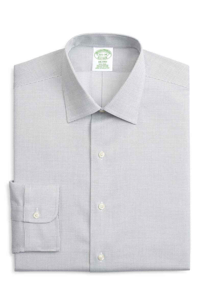 Camisa social masculina Brooks Brothers Milano Slim Fit, sem passar, Dobby Supima, algodão, cinza, t...